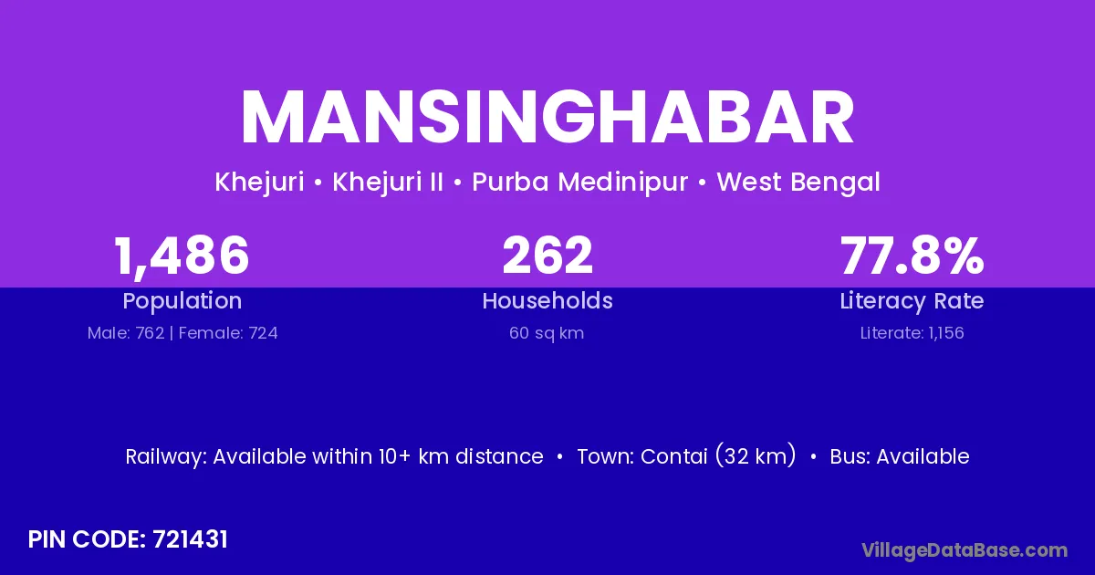 Mansinghabar village is located in the Khejuri II Subdivision of the Purba Medinipur district in West Bengal.