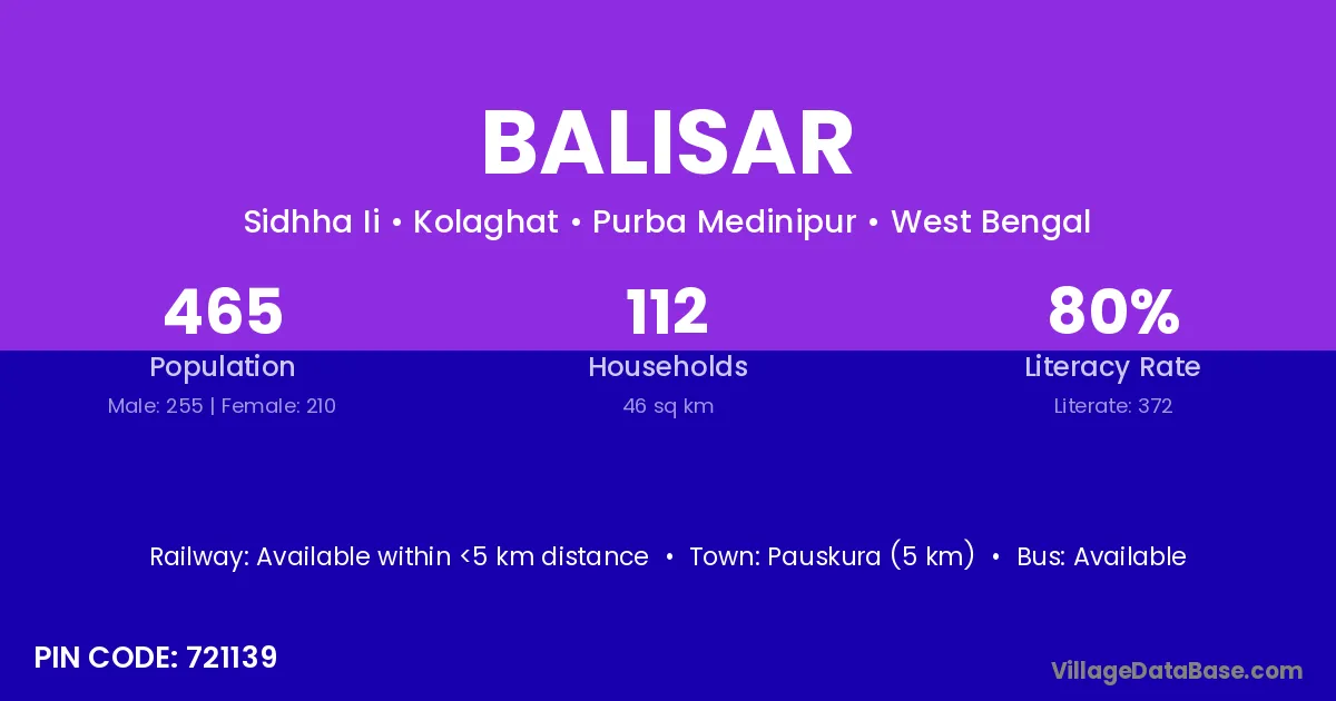 Balisar village is located in the Kolaghat Subdivision of the Purba Medinipur district in West Bengal .