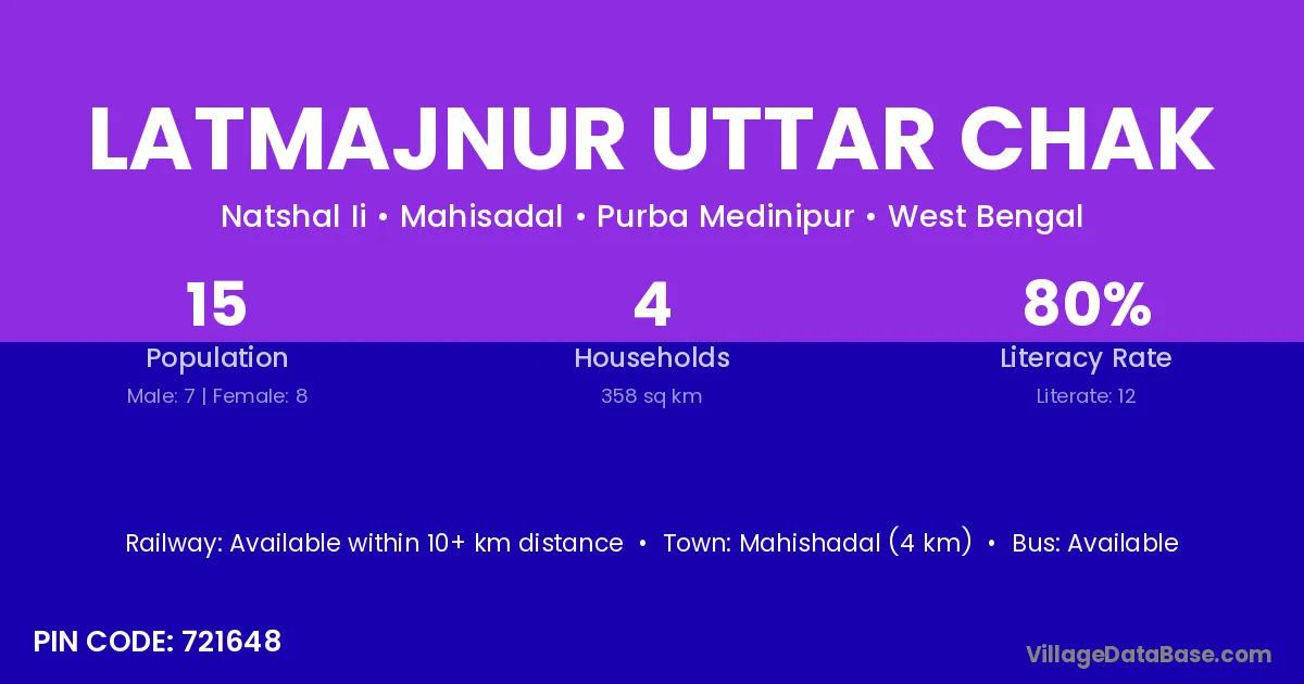 Mahishadal (4 km) is the nearest town to Latmajnur Uttar Chak village for major economic activities and is located approximately 4 km away.