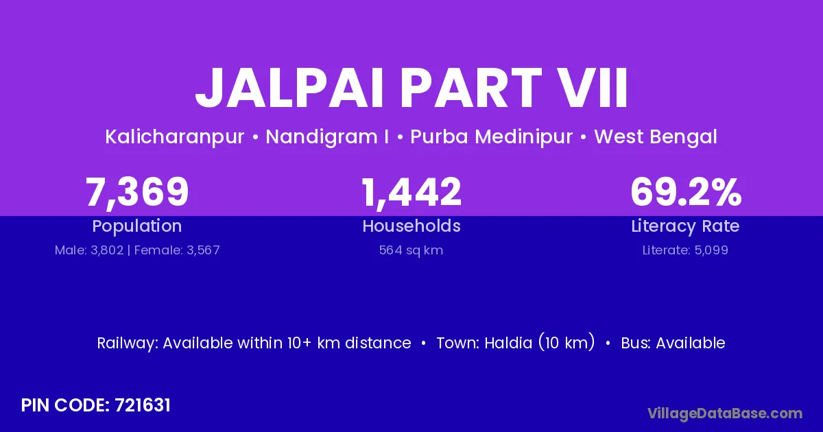 Haldia (10 km) is the nearest town to Jalpai Part Vii village for major economic activities and is located approximately 10 km away.
