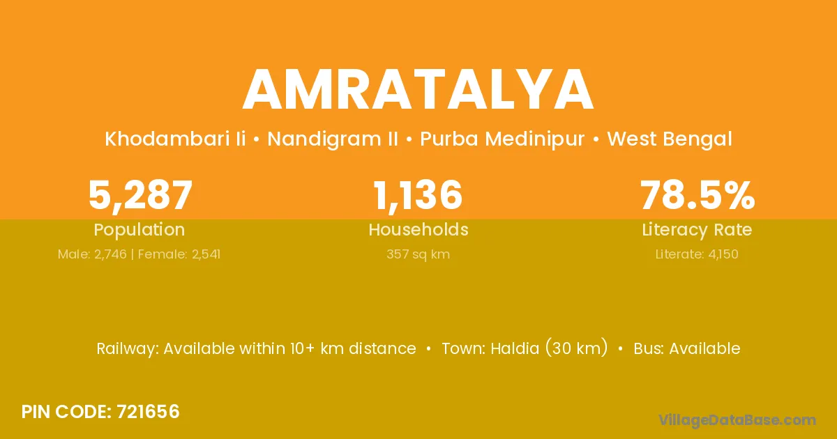 Amratalya village is located in the Nandigram II Subdivision of the Purba Medinipur district in West Bengal.
