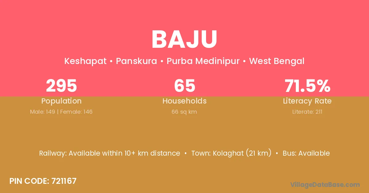 Kolaghat (21 km) is the nearest town to Baju village for major economic activities and is located approximately 21 km away.