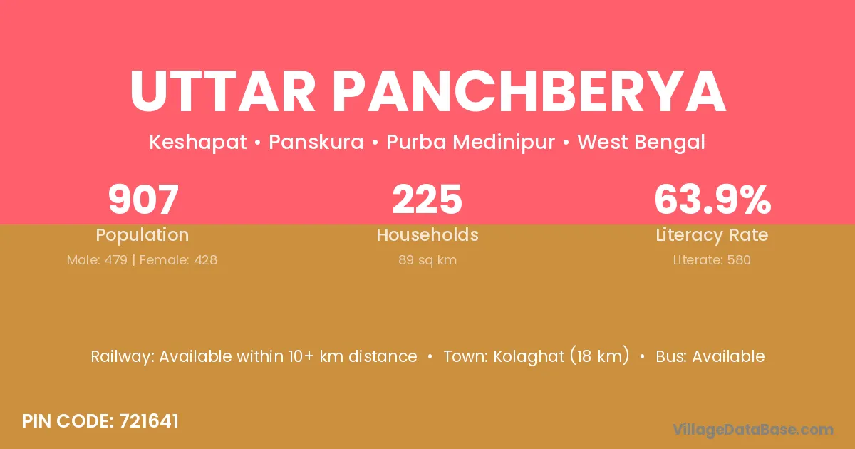 Uttar Panchberya village is located in the Panskura Subdivision of the Purba Medinipur district in West Bengal.