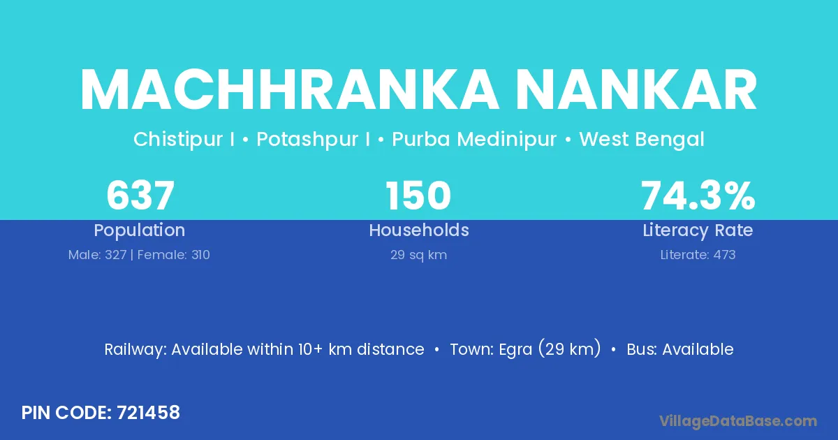 Egra (29 km) is the nearest town to Machhranka Nankar village for major economic activities and is located approximately 29 km away.