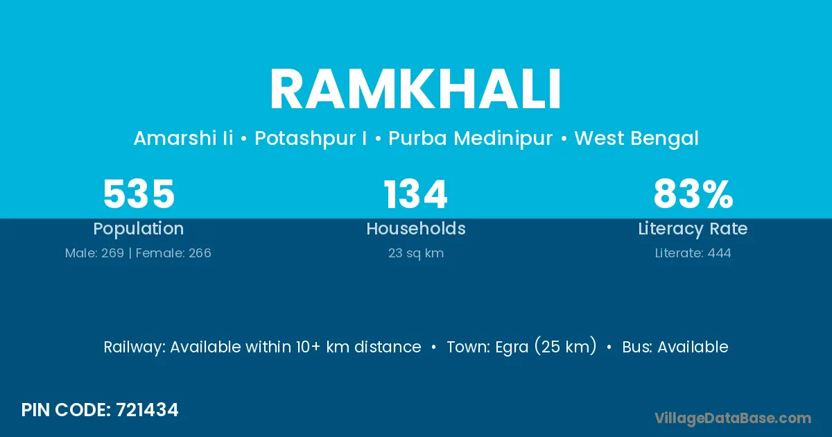 Egra (25 km) is the nearest town to Ramkhali village for major economic activities and is located approximately 25 km away.