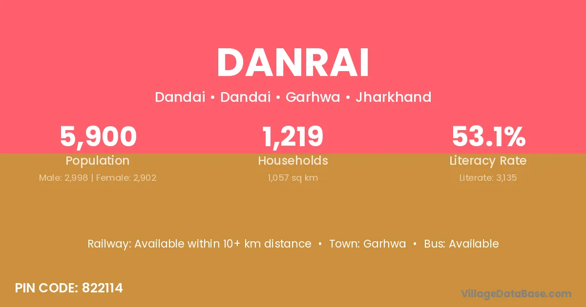 The literacy rate of Danrai village is 85.08%. Male literacy stands at 89.14% and female literacy at 81.14%.