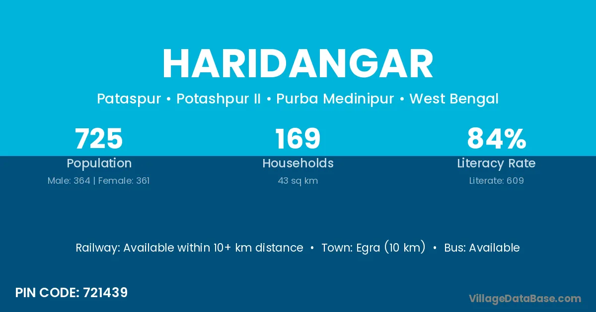 Egra (10 km) is the nearest town to Haridangar village for major economic activities and is located approximately 10 km away.