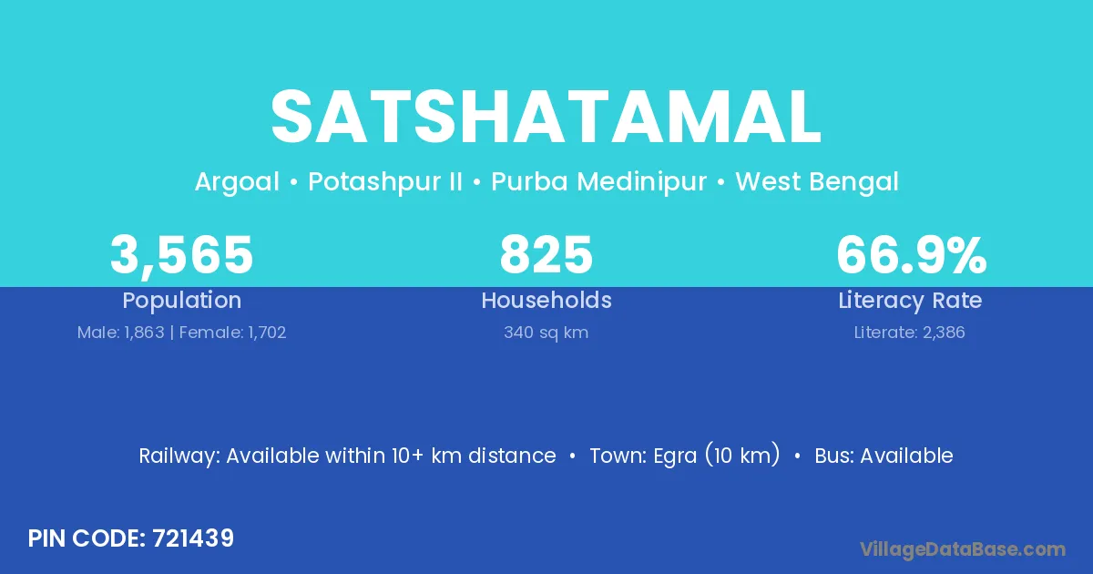 Egra (10 km) is the nearest town to Satshatamal village for major economic activities and is located approximately 10 km away.