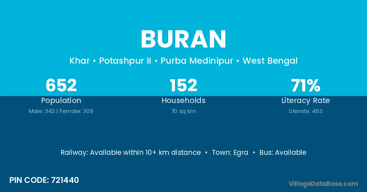 Egra is the nearest town to Buran village for major economic activities