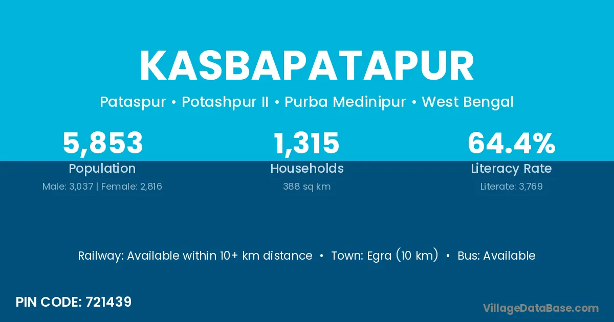 Egra (10 km) is the nearest town to Kasbapatapur village for major economic activities and is located approximately 10 km away.