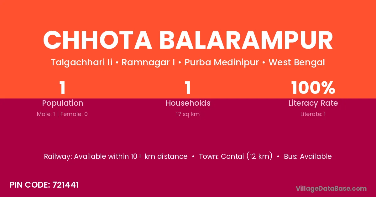Contai (12 km) is the nearest town to Chhota Balarampur village for major economic activities and is located approximately 12 km away.