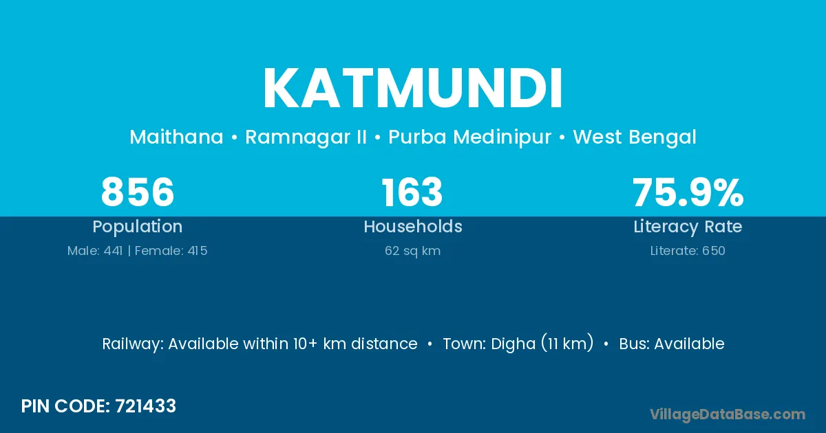 Digha (11 km) is the nearest town to Katmundi village for major economic activities and is located approximately 11 km away.