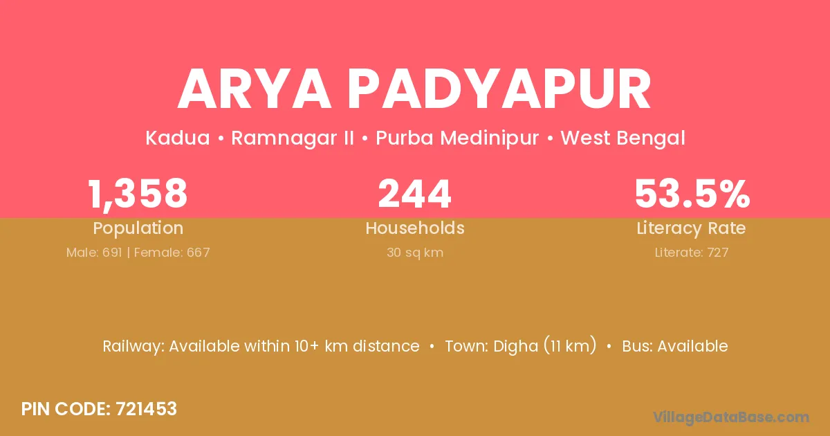 Digha (11 km) is the nearest town to Arya Padyapur village for major economic activities and is located approximately 11 km away.