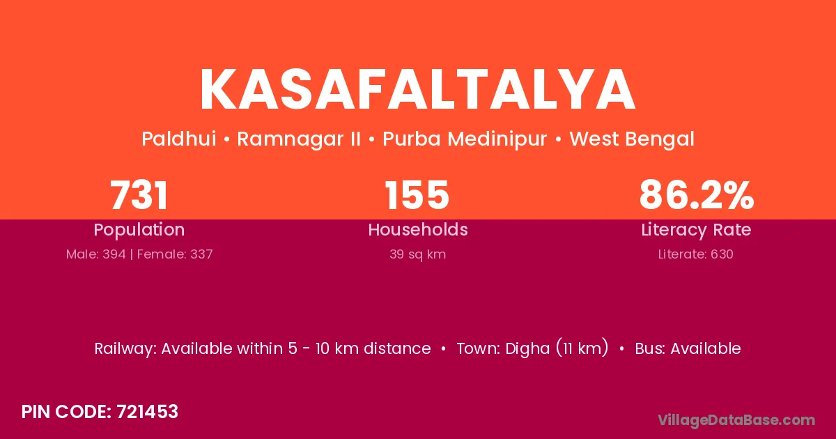 Kasafaltalya village is located in the Ramnagar II Subdivision of the Purba Medinipur district in West Bengal .
