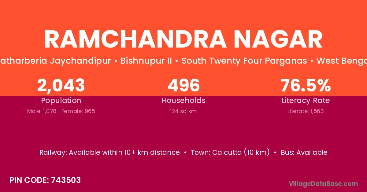 Contai (11 km) is the nearest town to Ramchandra Nagar village for major economic activities and is located approximately 11 km away.