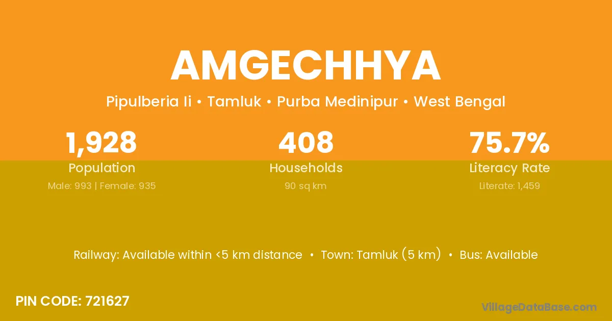 Tamluk (5 km) is the nearest town to Amgechhya village for major economic activities and is located approximately 5 km away.