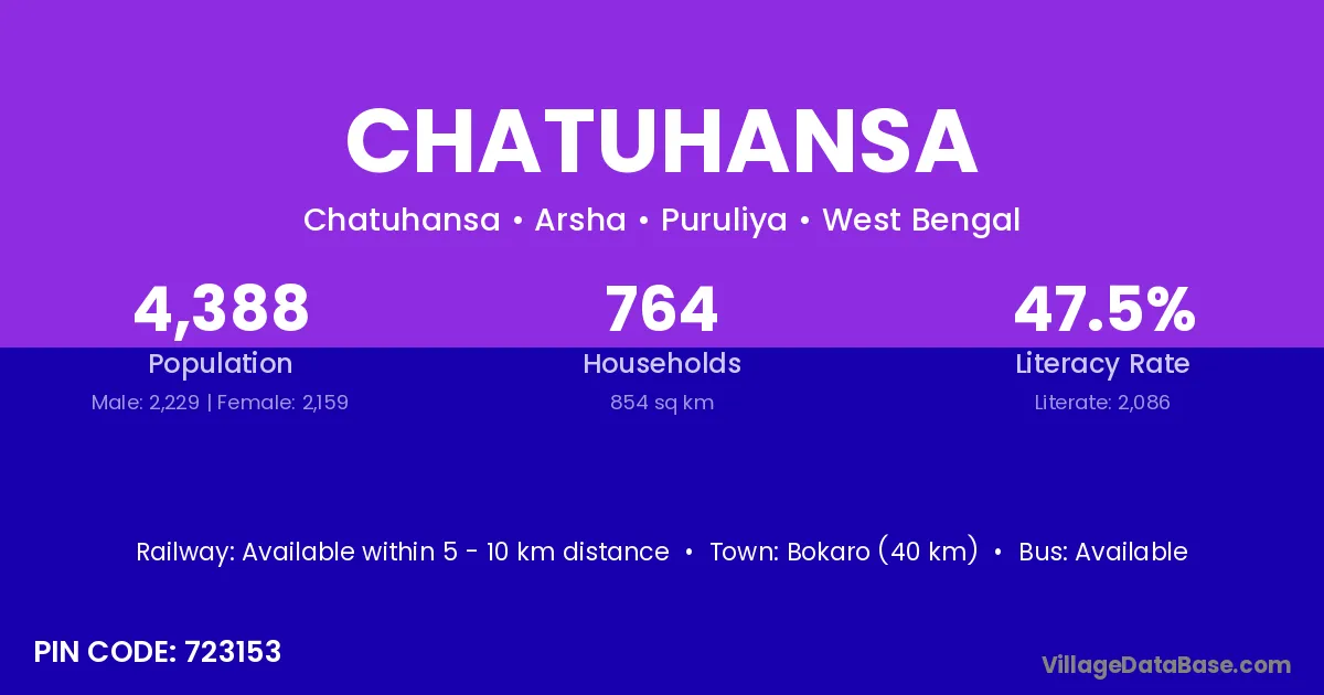 Bokaro (40 km) is the nearest town to Chatuhansa village for major economic activities and is located approximately 40 km away.