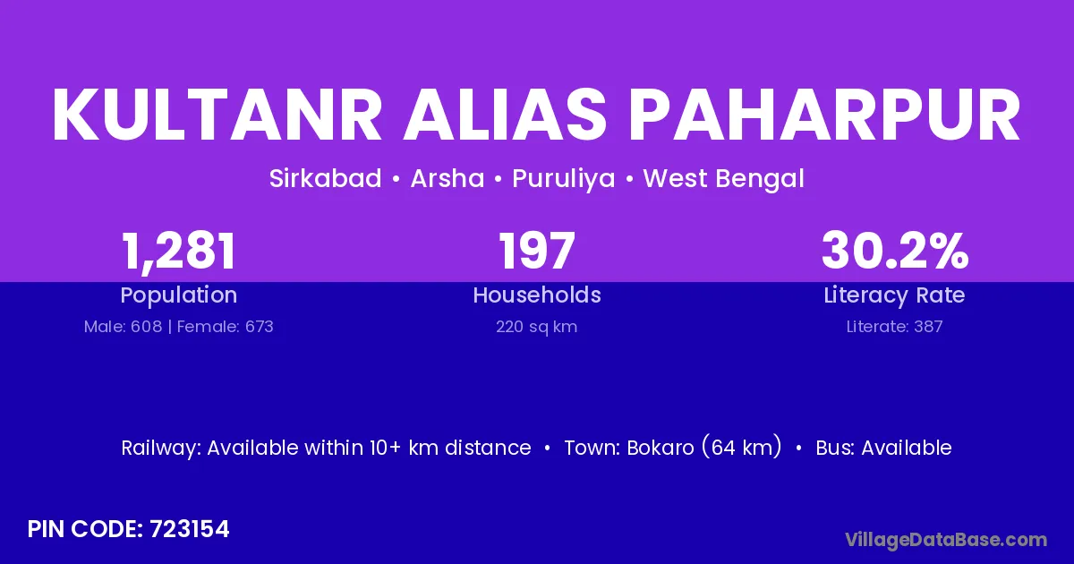 Kultanr Alias Paharpur village is located in the Arsha Subdivision of the Puruliya district in West Bengal.