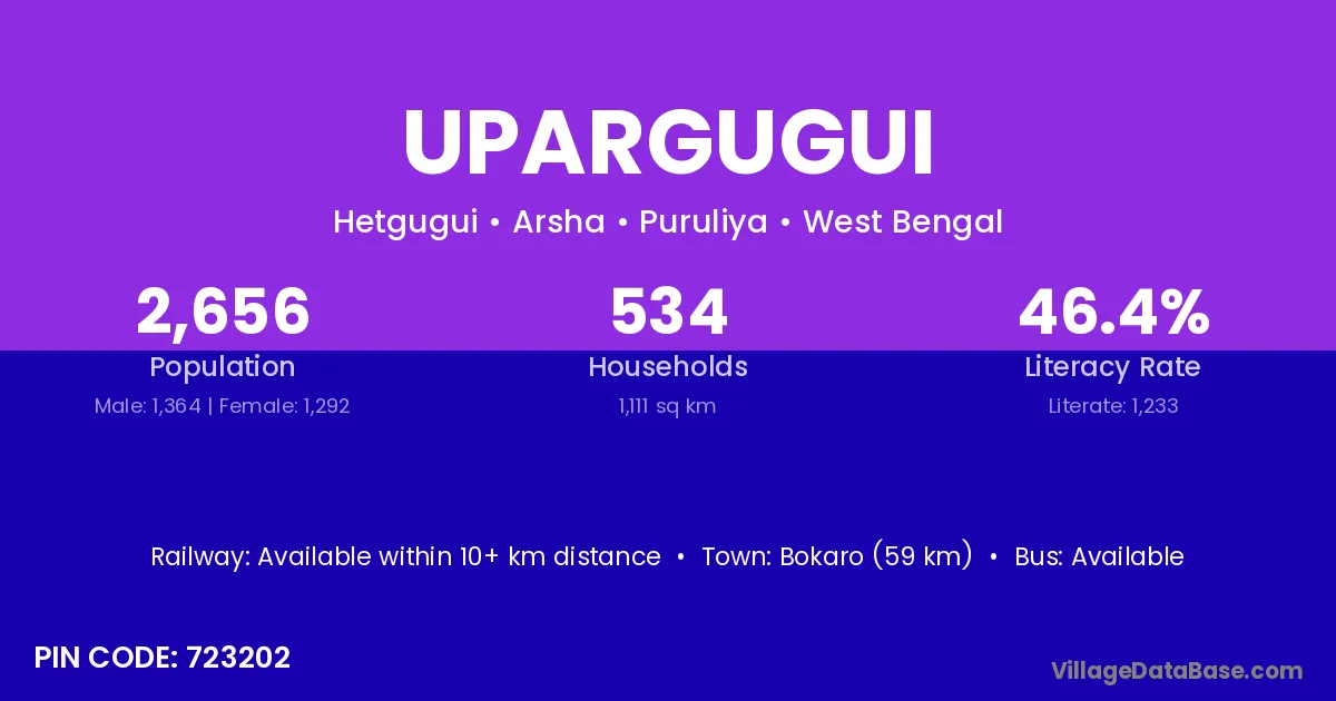 Bokaro (59 km) is the nearest town to Upargugui village for major economic activities and is located approximately 59 km away.
