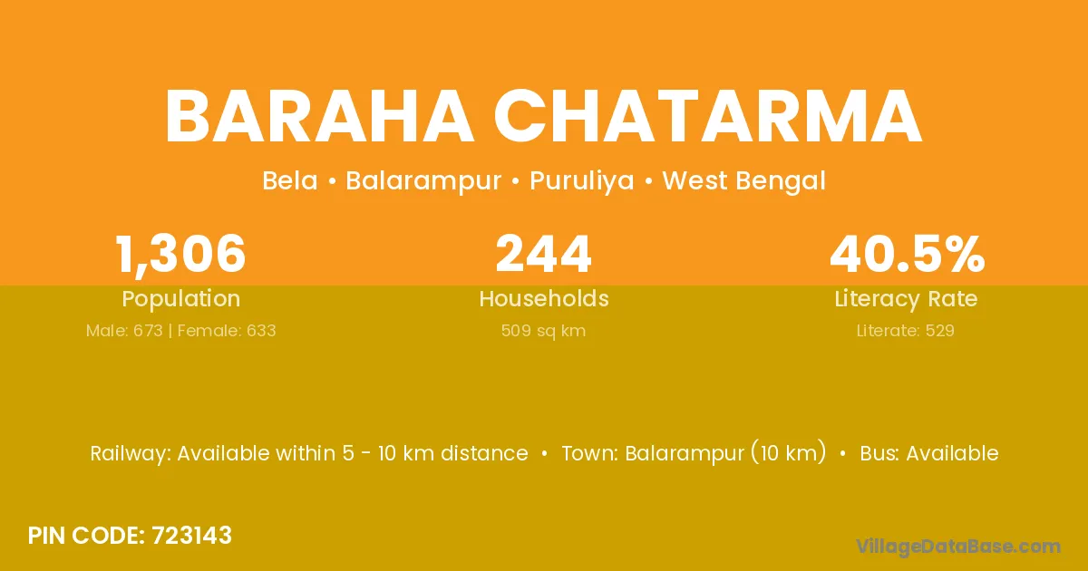 According to Census 2011 information, the village code of Baraha Chatarma village is 723143.