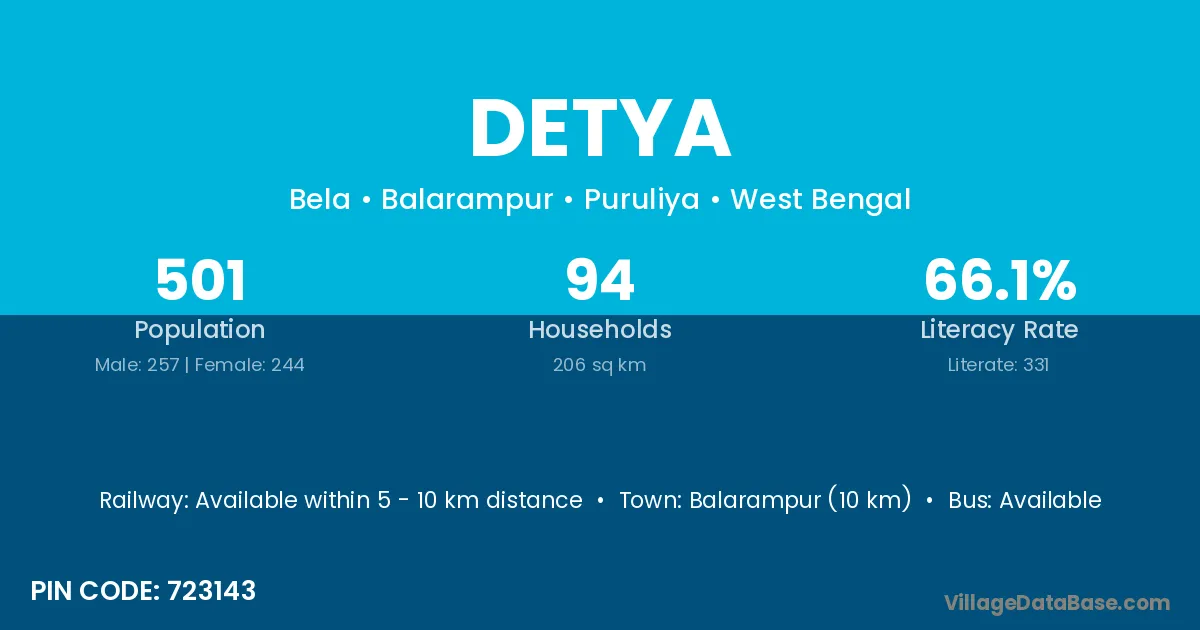 Detya village is located in the Balarampur Subdivision of the Puruliya district in West Bengal.