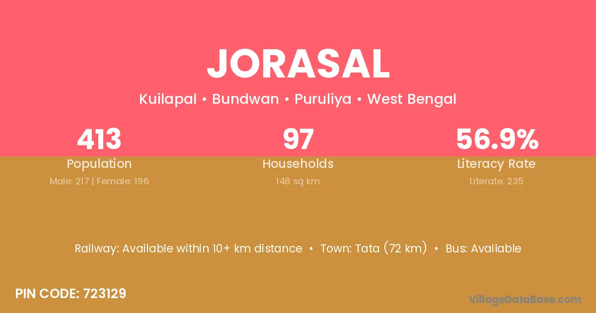 Jorasal village is located in the Bundwan Subdivision of the Puruliya district in West Bengal.