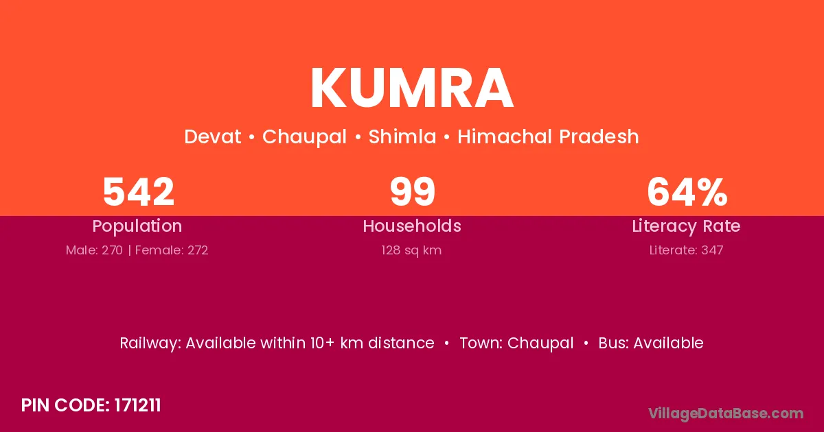 Tata (67 km) is the nearest town to Kumra village for major economic activities and is located approximately 67 km away.