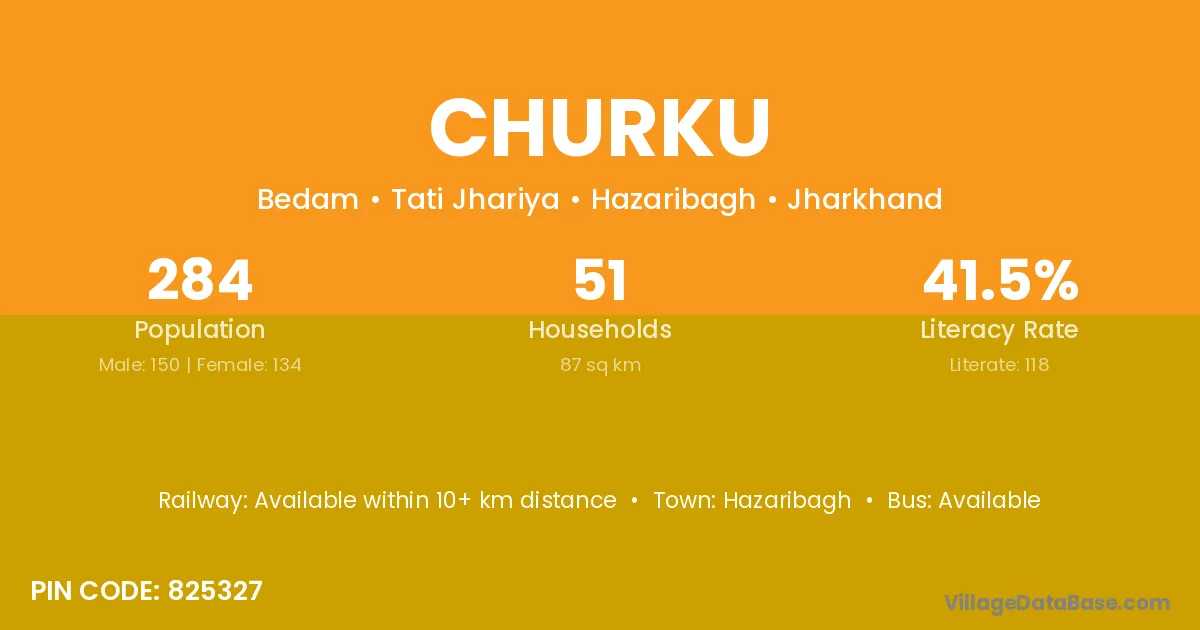 Tata (65 km) is the nearest town to Churku village for major economic activities and is located approximately 65 km away.