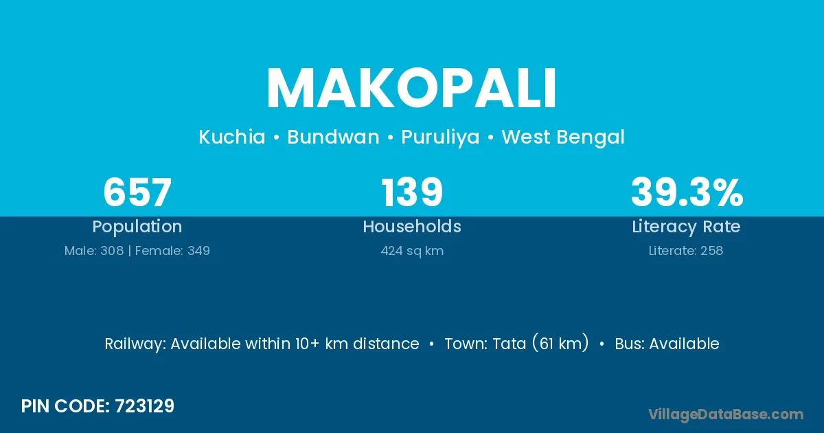 Tata (61 km) is the nearest town to Makopali village for major economic activities and is located approximately 61 km away.