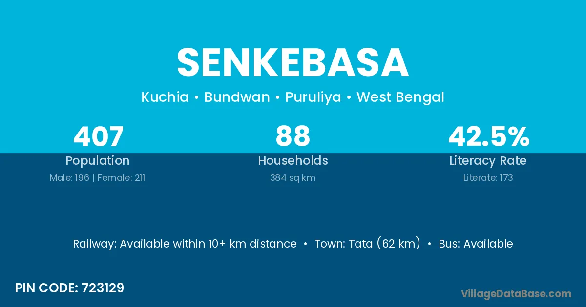 Senkebasa village has a total population of 407 people, of which 196 are males and 211 are females.