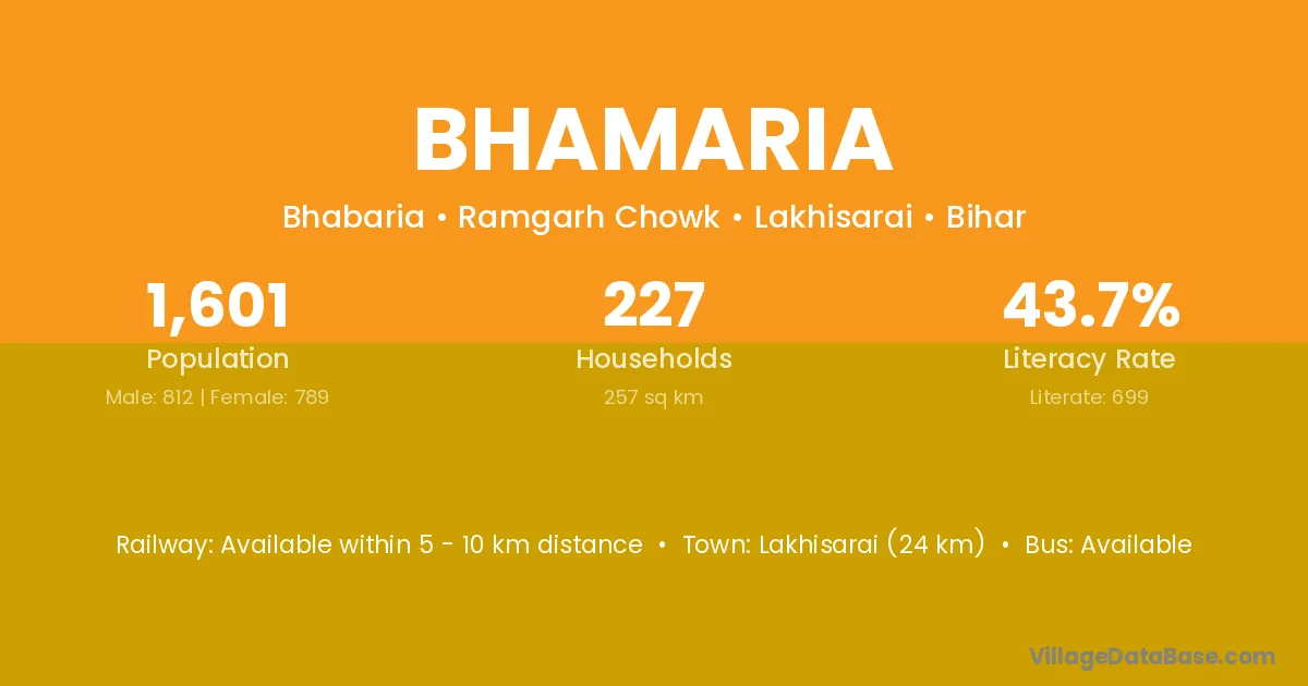 Barakar (12 km) is the nearest town to Bhamaria village for major economic activities and is located approximately 12 km away.