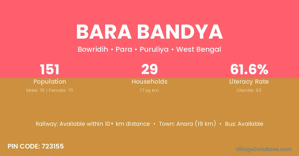 Bara Bandya village is located in the Para Subdivision of the Puruliya district in West Bengal.