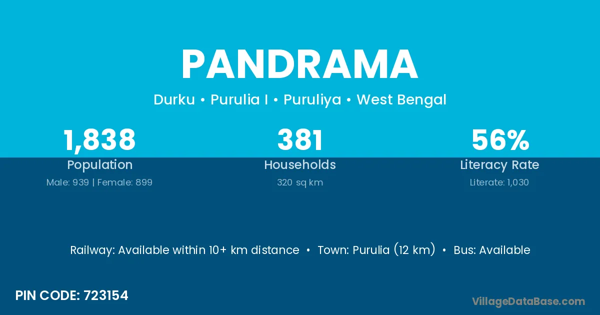 Purulia (12 km) is the nearest town to Pandrama village for major economic activities and is located approximately 12 km away.