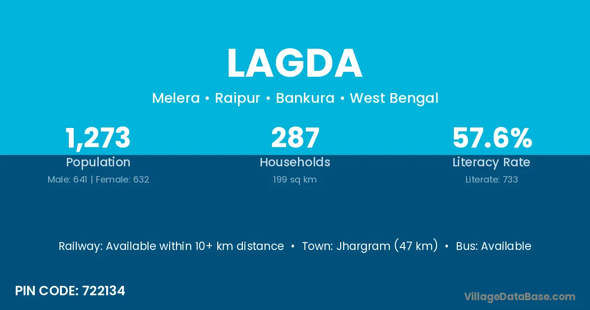 Lagda village is located in the Purulia I Subdivision of the Puruliya district in West Bengal.