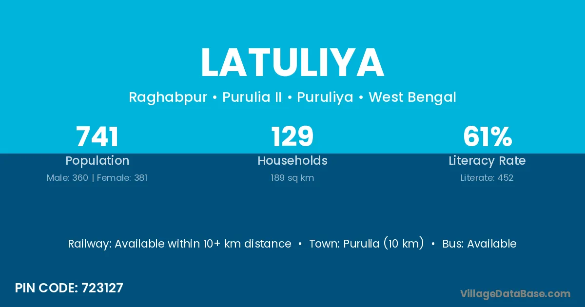 Latuliya village is located in the Purulia II Subdivision of the Puruliya district in West Bengal.