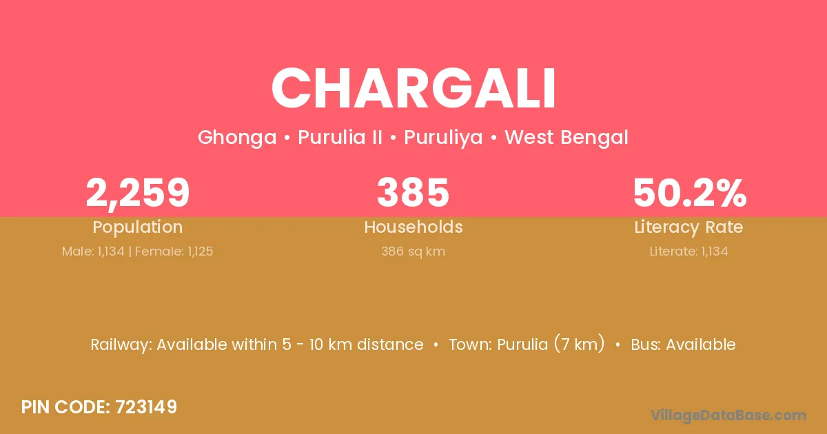Purulia (7 km) is the nearest town to Chargali village for major economic activities and is located approximately 7 km away.