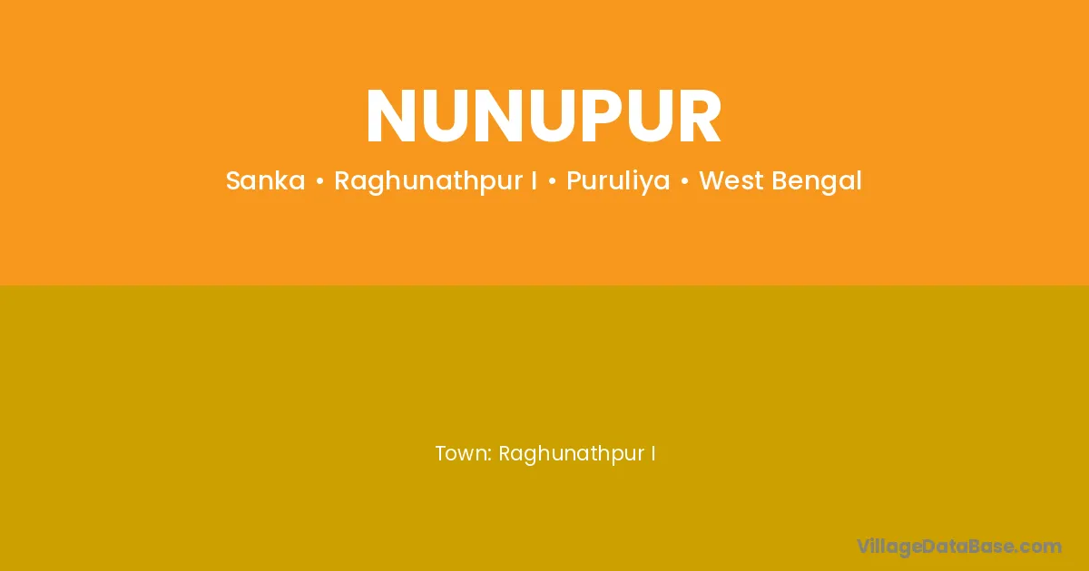 Raghunathpur I is the nearest town to Nunupur village for major economic activities