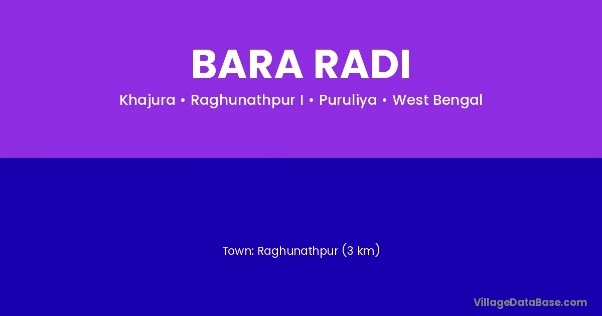 Raghunathpur (3 km) is the nearest town to Bara Radi village for major economic activities and is located approximately 3 km away.