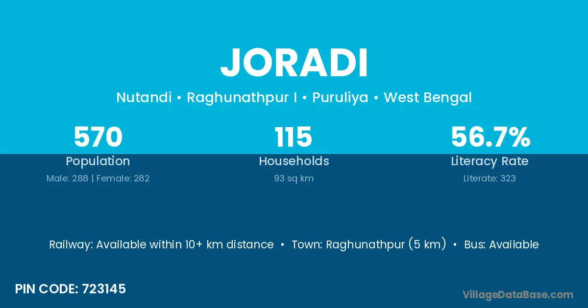 Raghunathpur (5 km) is the nearest town to Joradi village for major economic activities and is located approximately 5 km away.