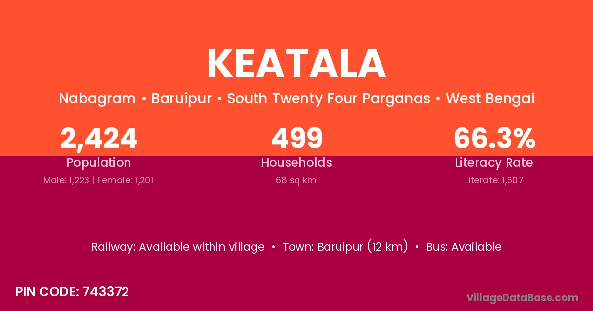 Baruipur (12 km) is the nearest town to Keatala village for major economic activities and is located approximately 12 km away.