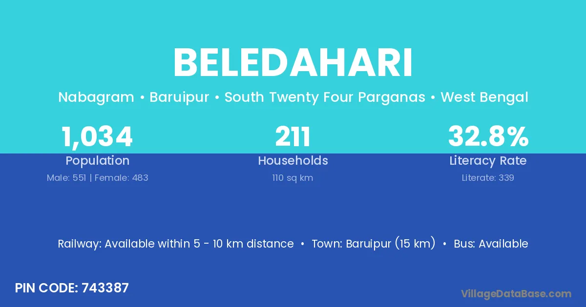 Baruipur (15 km) is the nearest town to Beledahari village for major economic activities and is located approximately 15 km away.