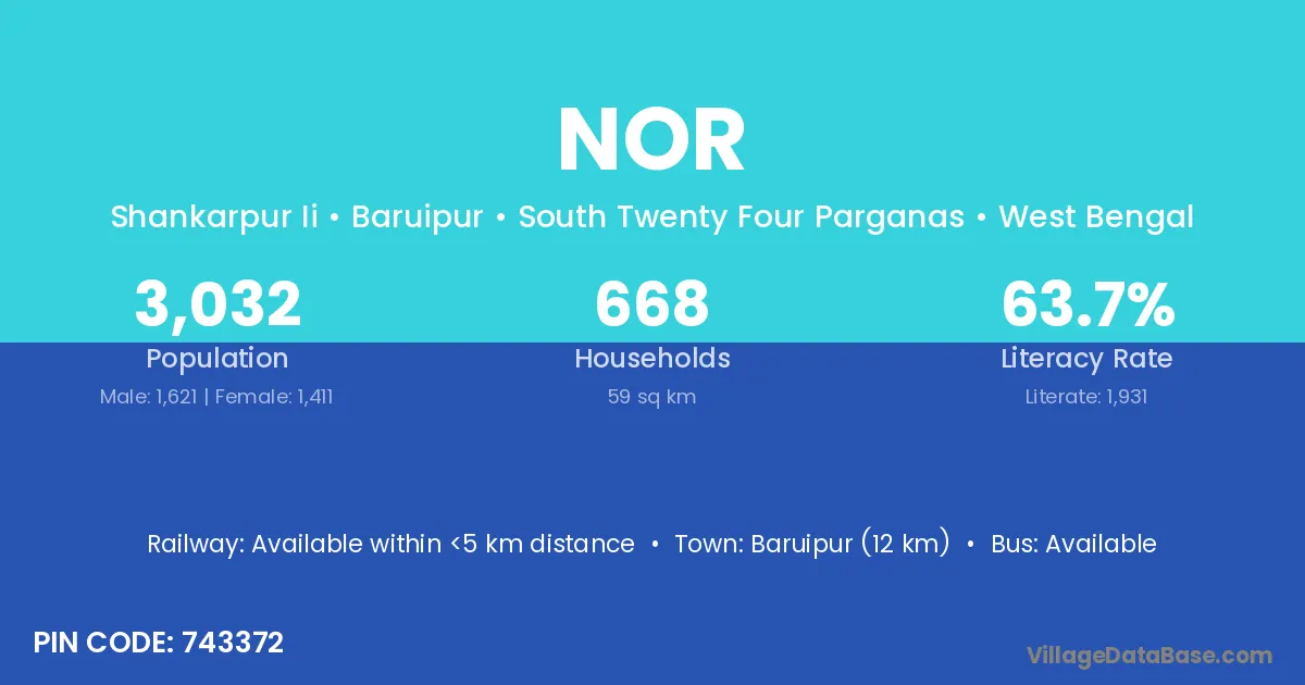 Baruipur (12 km) is the nearest town to Nor village for major economic activities and is located approximately 12 km away.