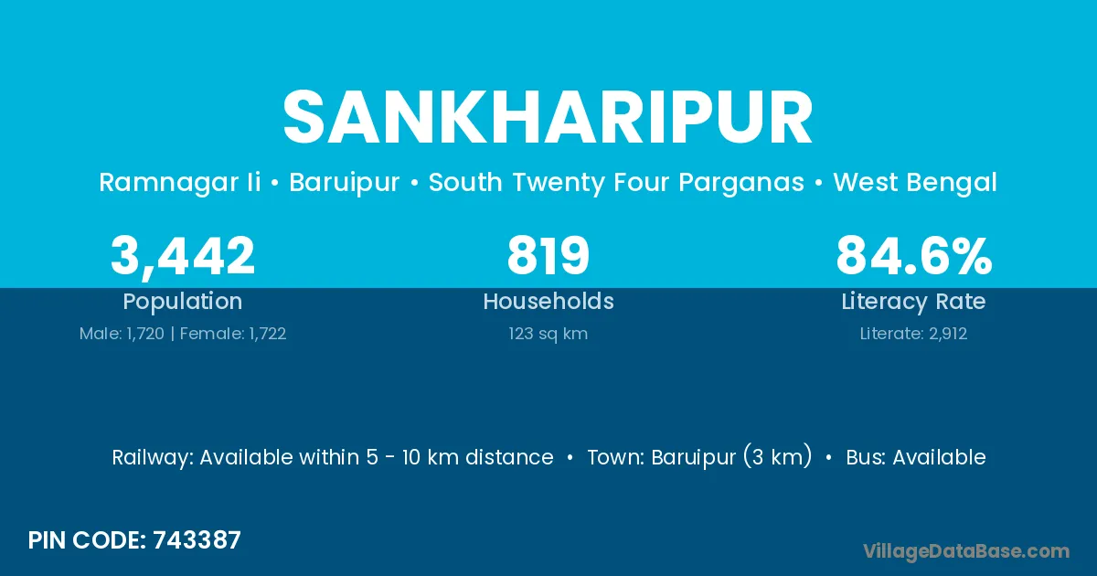 Baruipur (3 km) is the nearest town to Sankharipur village for major economic activities and is located approximately 3 km away.
