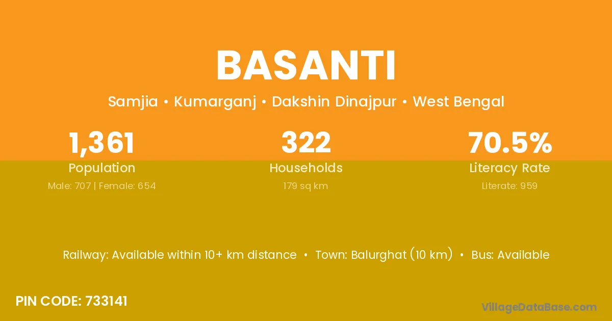 Basanti is the nearest town to Basanti village for major economic activities