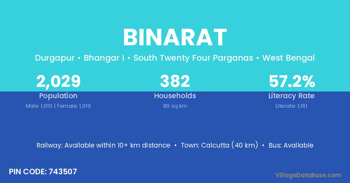 Calcutta (40 km) is the nearest town to Binarat village for major economic activities and is located approximately 40 km away.