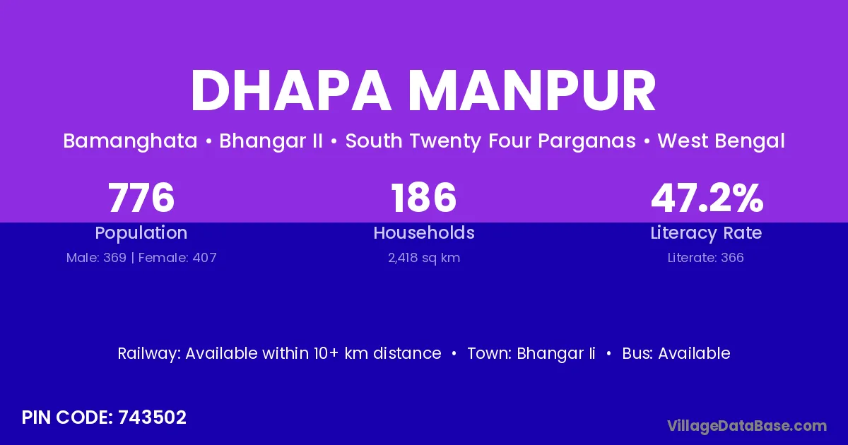 Dhapa Manpur village is located in the Bhangar II Subdivision of the South Twenty Four Parganas district in West Bengal.