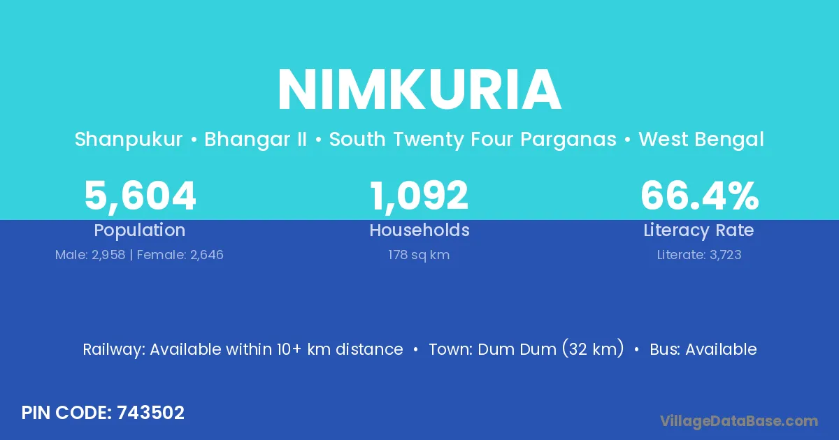 Nimkuria village is located in the Bhangar II Subdivision of the South Twenty Four Parganas district in West Bengal.