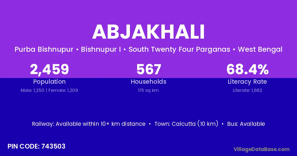 Calcutta (10 km) is the nearest town to Abjakhali village for major economic activities and is located approximately 10 km away.