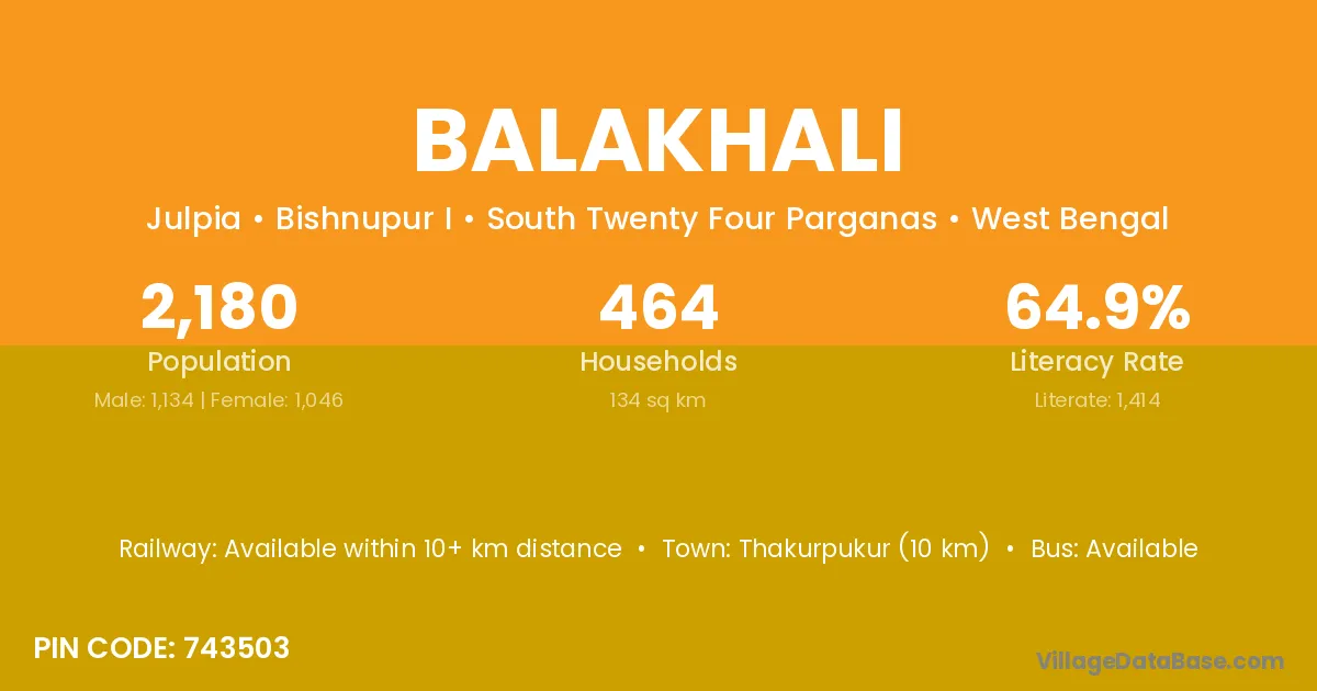 Thakurpukur (10 km) is the nearest town to Balakhali village for major economic activities and is located approximately 10 km away.