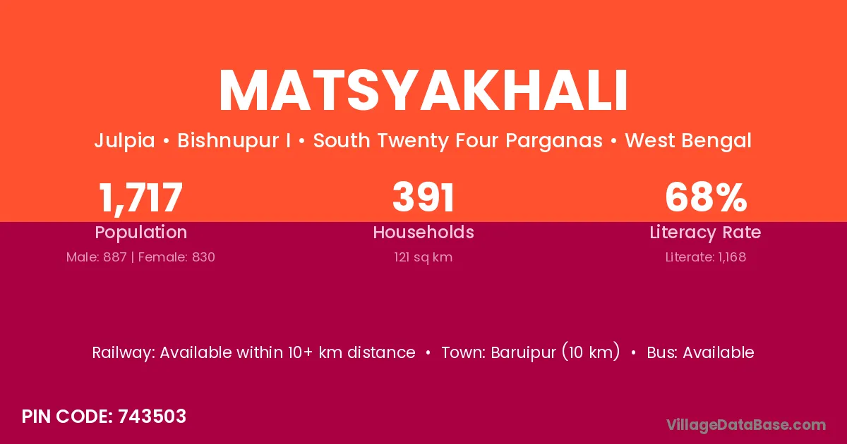 Baruipur (10 km) is the nearest town to Matsyakhali village for major economic activities and is located approximately 10 km away.
